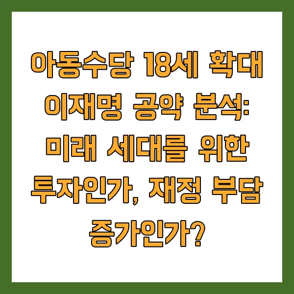아동수당 18세 확대 이재명 공약 분석: 미래 세대를 위한 투자인가, 재정 부담 증가인가?